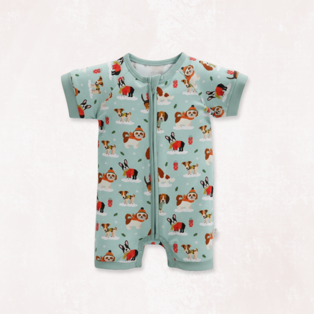 Puppy Love Blue Nightsuits, Sleepsuit, Bodysuit, super soft, sensitive skin Half Sleeves Zipper Romper